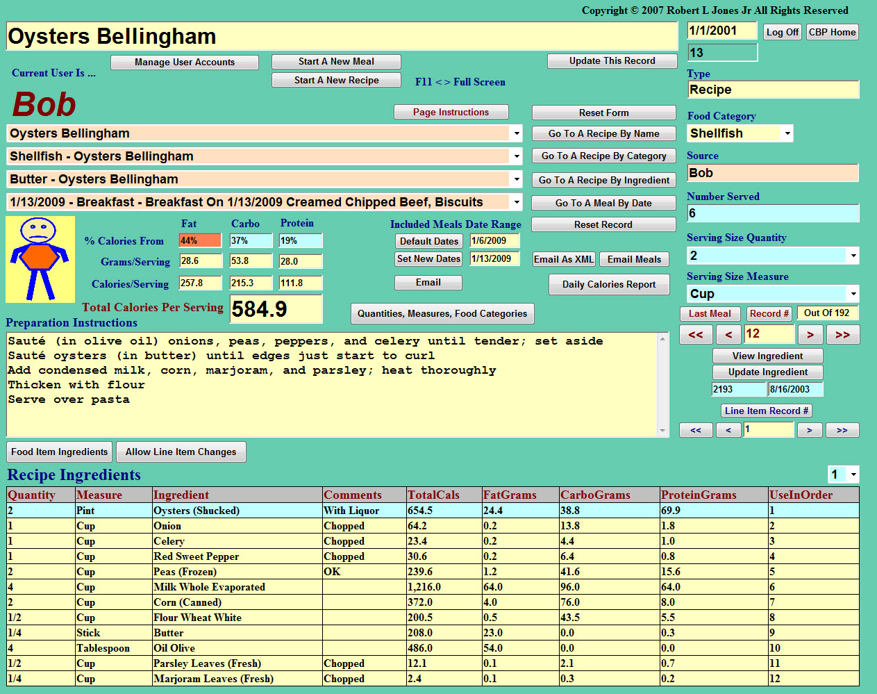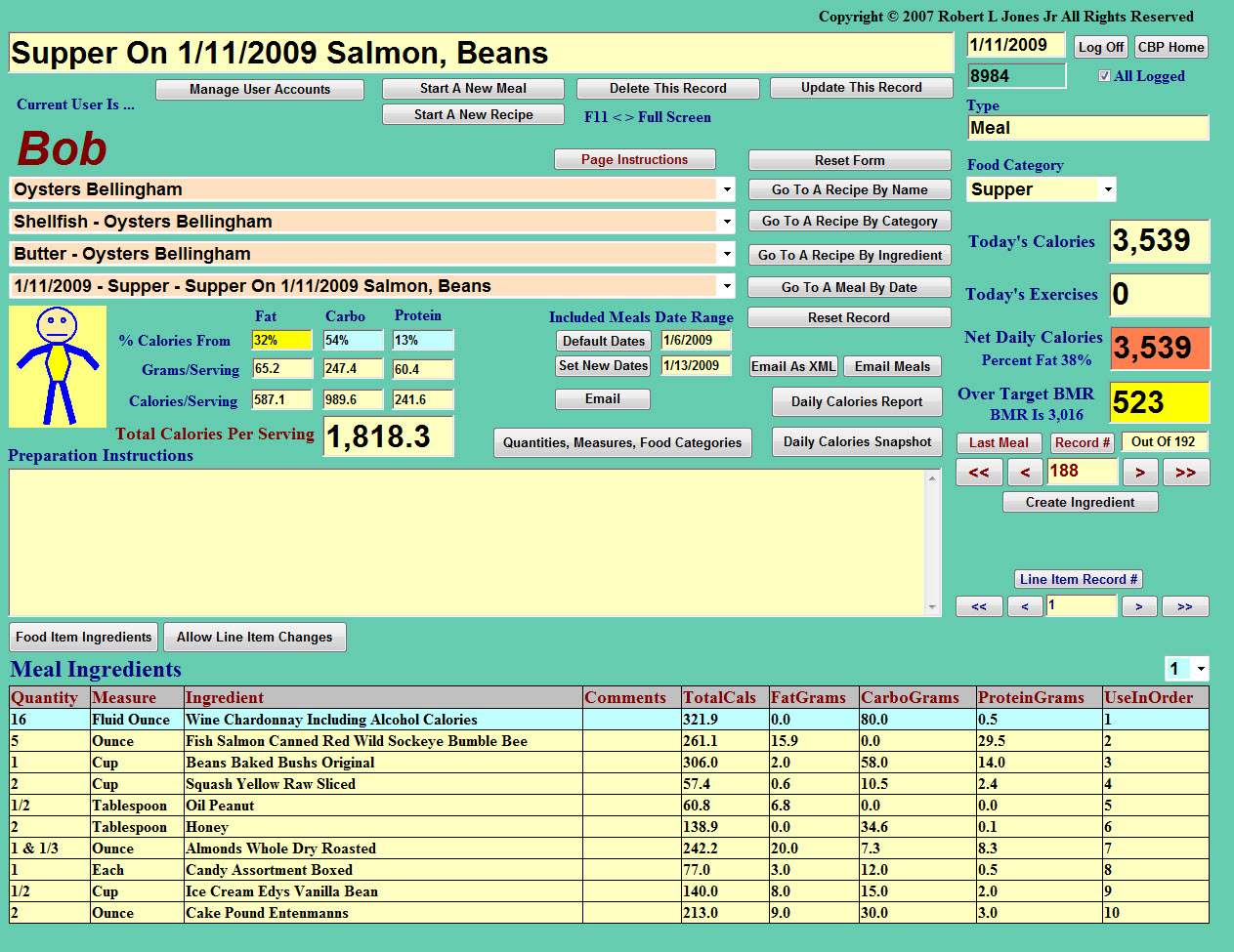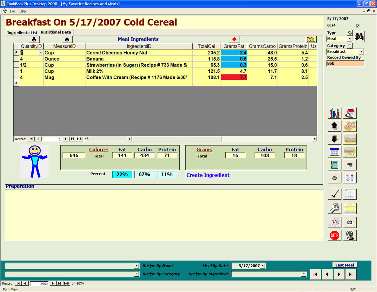 Familiar Page Is Used To Enter Both Recipes And Meals