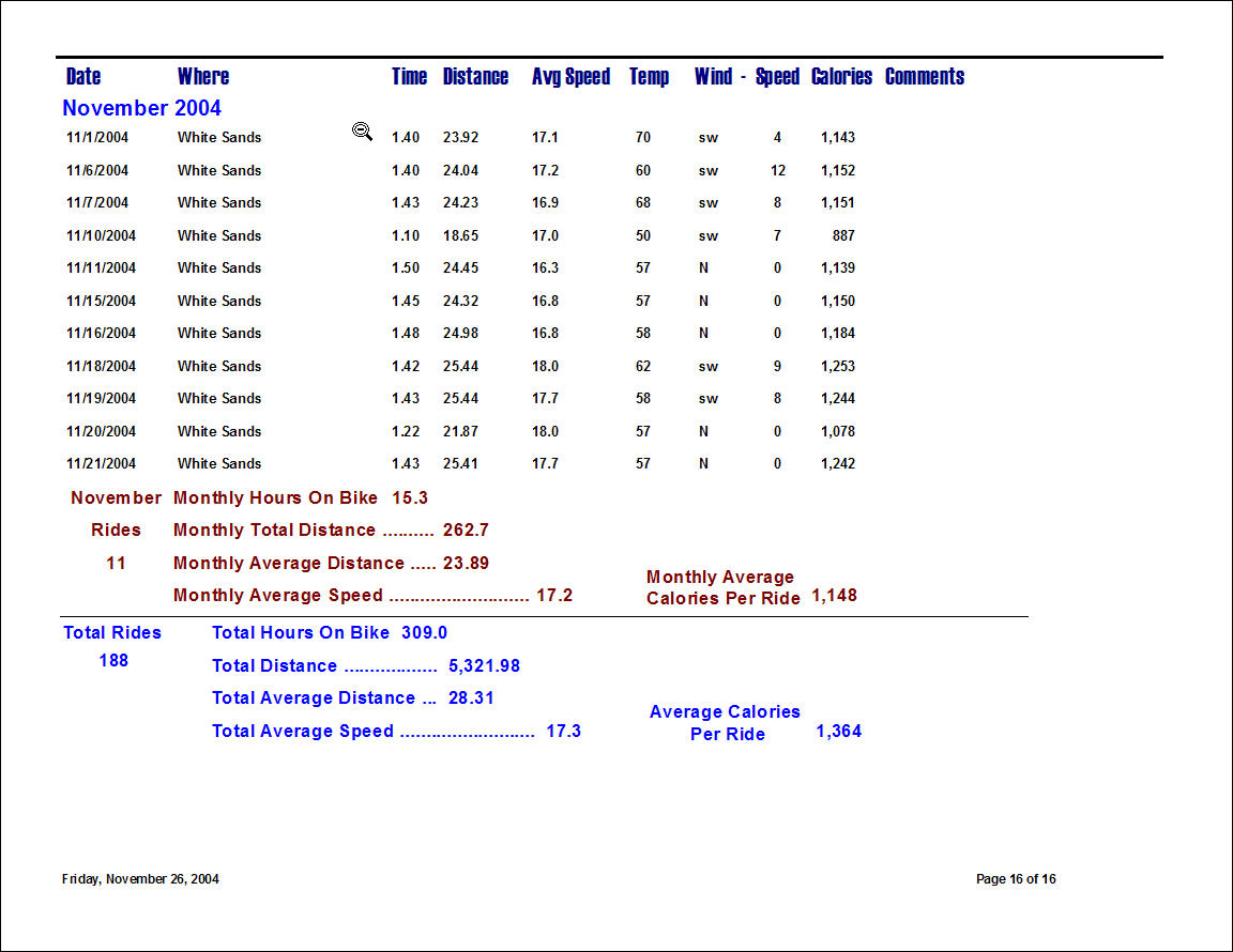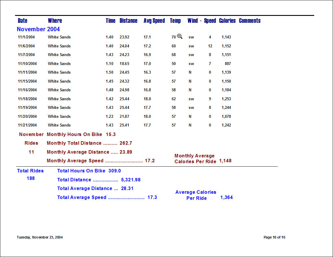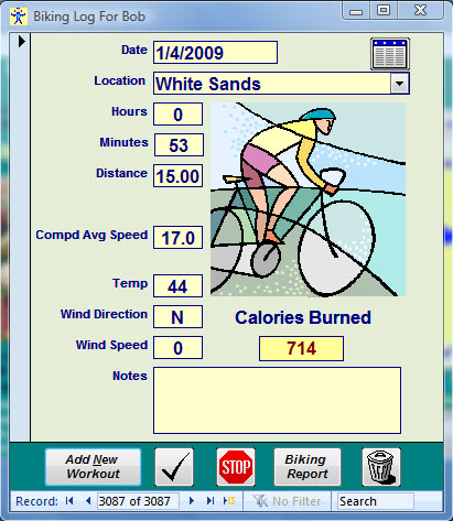 Typical Bicycling Log
