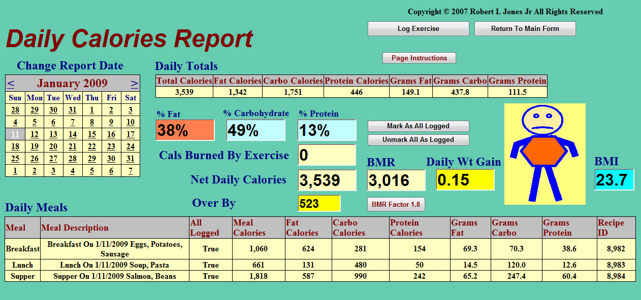 Typical Daily Calories Report Page