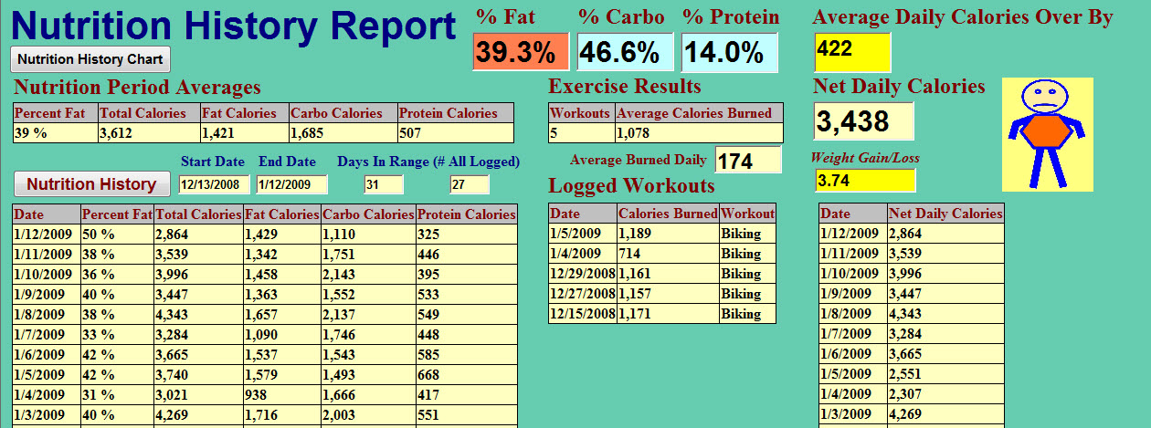 Button On The Nutrition History Report Page To View Your Nutrition History Chart. Chart Includes Total Calories, Exercise Calories,